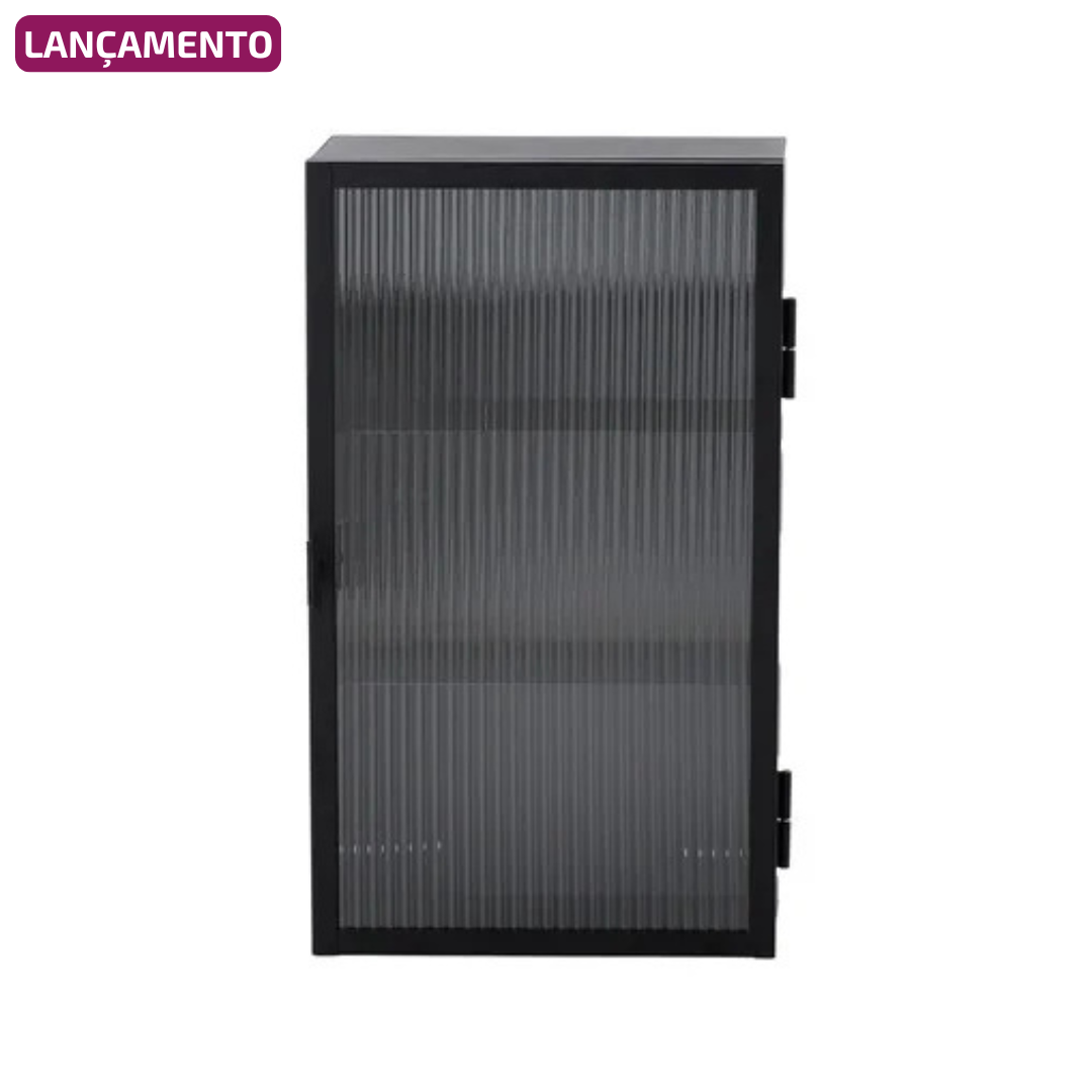 - O Armário Denver é uma peça compacta e cheia de personalidade. Com suas portas em vidro canelado, essa é a peça perfeita para compor banheiros, cozinhas e demais ambientes.