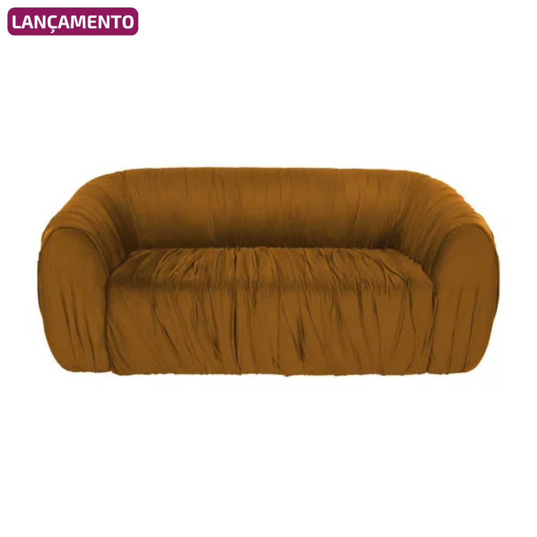 - Feito em veludo, com seu toque macio, brilho sutil e aparência nobre, acrescenta uma camada de luxo tátil e visual à peça. Conhecido por sua durabilidade e conforto térmico, o tecido reforça a sensação de aconchego sem perder a sofisticação. Essa dualidade entre o pesado e o leve, o estático e o dinâmico, faz do sofá não apenas um objeto funcional, mas uma verdadeira escultura no ambiente