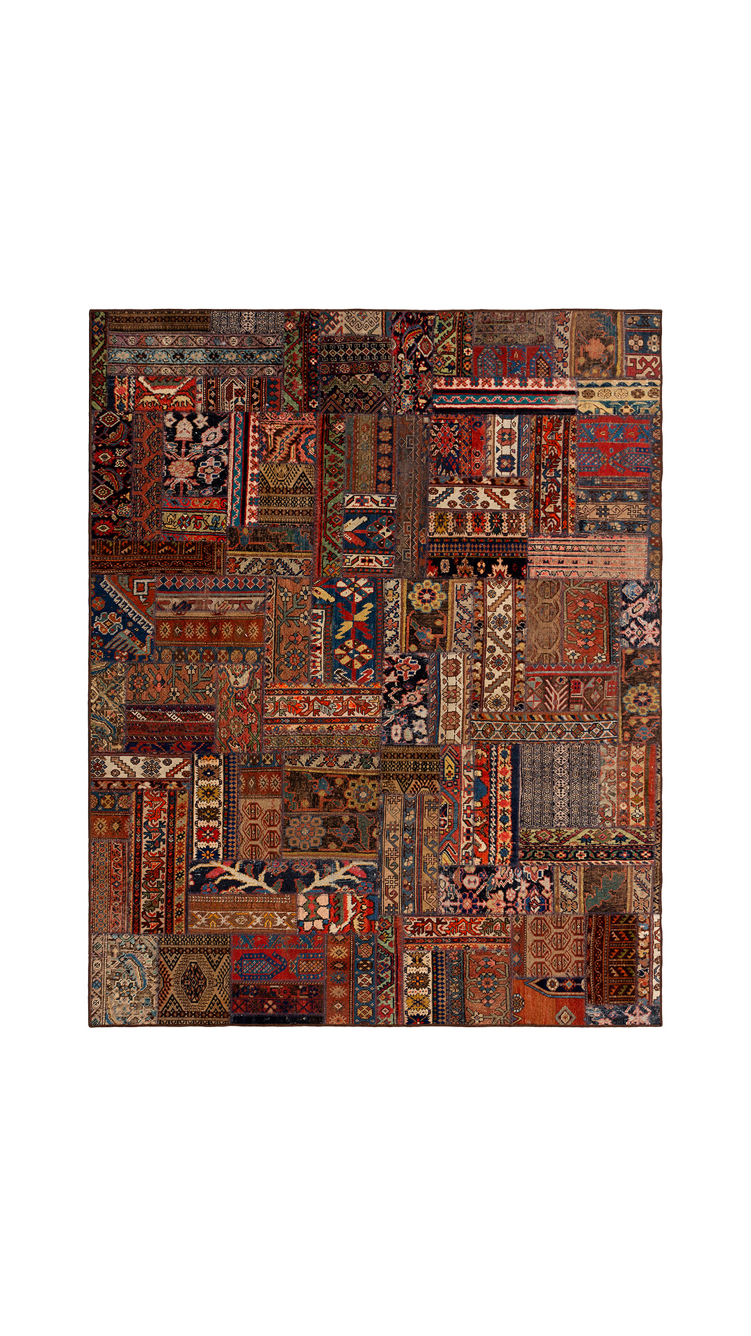 Goltchin são peças criadas com fragmentos de tapetes de várias procedências (Nepal, Índia, Irã, etc.) e períodos (antigos e novos). Todos os Goltchins são criados no ateliê da by Kamy, pelas mãos de talentosos artesões que combinam e mesclam esses diferentes fragmentos construindo uma nova peça, um novo tapete único com muita história.