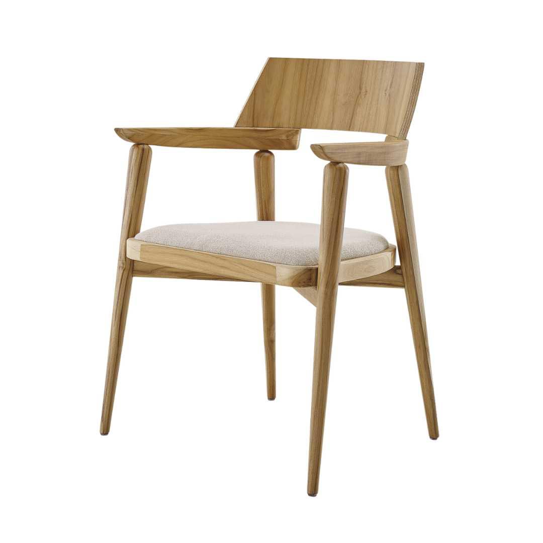 A cadeira possui características marcantes e leves, onde resistência e delicadeza se encontram. A estrutura é feita de madeira maciça, o encosto é de compensado multicamadas anatomicamente curvado e o assento é de espuma de média densidade. É até difícil escolher qual é melhor: o visual ou o conforto.