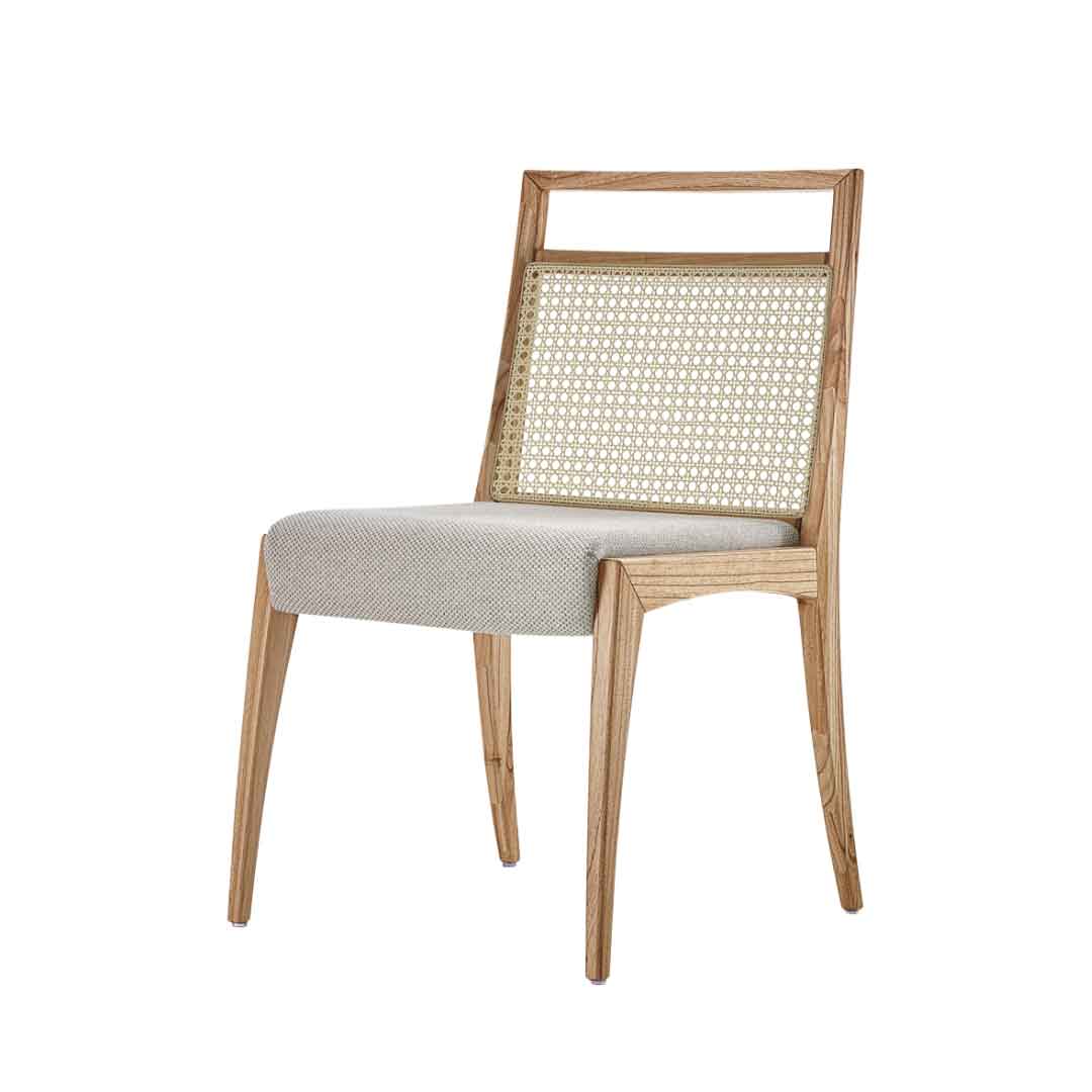Com design vintage, possui bordas lisas e é trabalhado em madeira maciça. Escolha o seu encosto preferido: revestido em tecido ou palha com fio de algodão natural em tapeçaria hexagonal. Versatilidade para relaxar com o seu estilo.