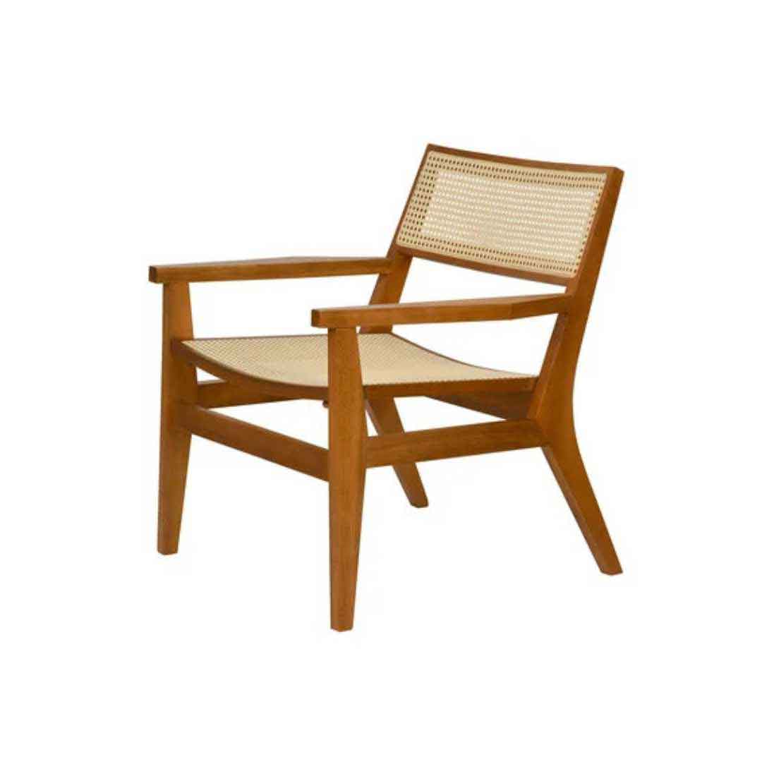 Com linhas retas e elegância atemporal, a Poltrona Sherroe possui sua estrutura em madeira de Eucalipto tingida na cor Pitanga com Assento e encosto em Rattan Natural